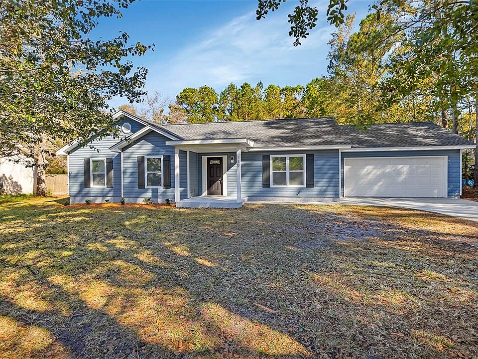 Welcome to your captivating Blythe Island retreat! Nestled on a generous half-acre down the road from a marina, this single-story ranch seamlessly blends modern sophistication with timeless charm. The thoughtfully designed open floor plan and 2-car garage provide comfort and convenience. The gourmet kitchen boasts brand-new cabinets, a stylish island with a built-in microwave, and all-new stainless steel appliances, including a water pot filler faucet for practical elegance. Meticulous renovations throughout the residence ensure carefree living. The master bathroom features a spa-like retreat with a tiled walk-in shower and a custom-built walk-in closet. Stylish ceiling fans and mirrored closet doors enhance each room's subtle sophistication. New wood trim and luxury vinyl plank flooring lead you seamlessly through the home. All brand new low E vinyl windows. The garage and backyard patio showcase newly laid epoxy flooring. Fresh paint, both inside and out, enhances curb appeal, complemented by landscaped surroundings and new exterior lighting for tranquil evenings.