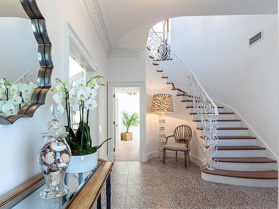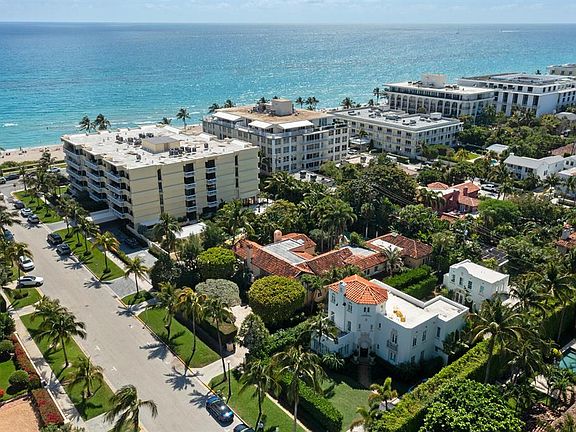 Exceptional Ocean Block Rental on Brazilian Ave. Just steps from the beach, Worth Avenue, and dining, this stunning property includes a 4-bedroom, 4.5-bath main house and a 2-bedroom, 2.5-bath guest house. The home is filled with exquisite architectural details and flooded with natural light. The main level features a grand double living room, formal dining area, library, and family room. The chef's kitchen is equipped with a Lacanche range and storage island. Soaring ceilings, light oak hardwood floors, an elevator, and gracefully curving staircases enhance the home's charm. French doors open to a coquina stone-covered patio and heated pool, surrounded by lush landscaping for ultimate privacy. Outdoor features include an outdoor shower, electric gate, and two car charging stations