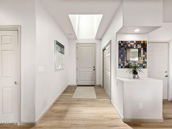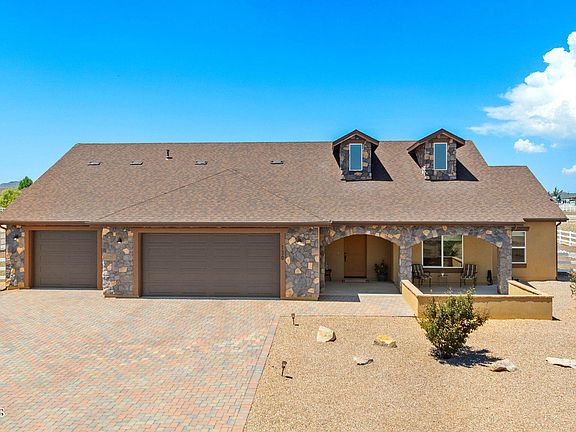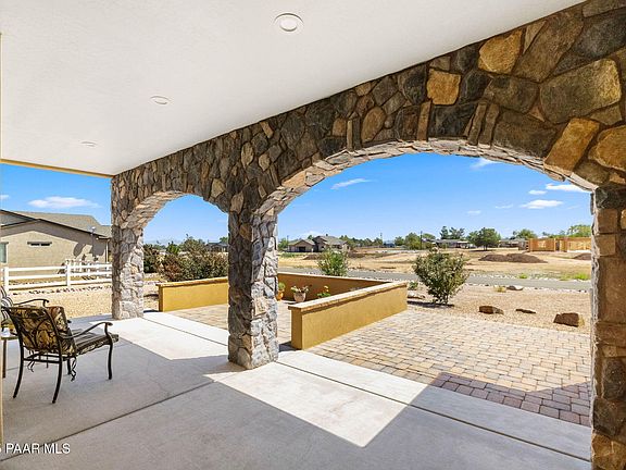 Modern elegance with mountain views! This custom 4-bedroom, 3-bath home in coveted Mollie Rae Estates was crafted by Arizona Heritage Construction and designed for both comfort and style. The open-concept layout features luxury vinyl plank flooring and panoramic views of Granite Mountain.The chef's kitchen is a true centerpiece, complete with a Forno professional stove, quartz countertops, rich hickory cabinetry, and an oversized island perfect for gatherings. Dual ensuite primary bedrooms, a wine bar with sink, and generous storage add to the thoughtful design.The nearly 1,000 sq ft 3-car garage includes a dedicated workshop bay. Energy efficiency shines with blown cellulose insulation, ceiling fans in every room, and plumbing for whole-house water filtration. Outside, the landscaped backyard offers new plantings and room to relax or entertain.This home is a true showpiece, don't miss the chance to make it yours.