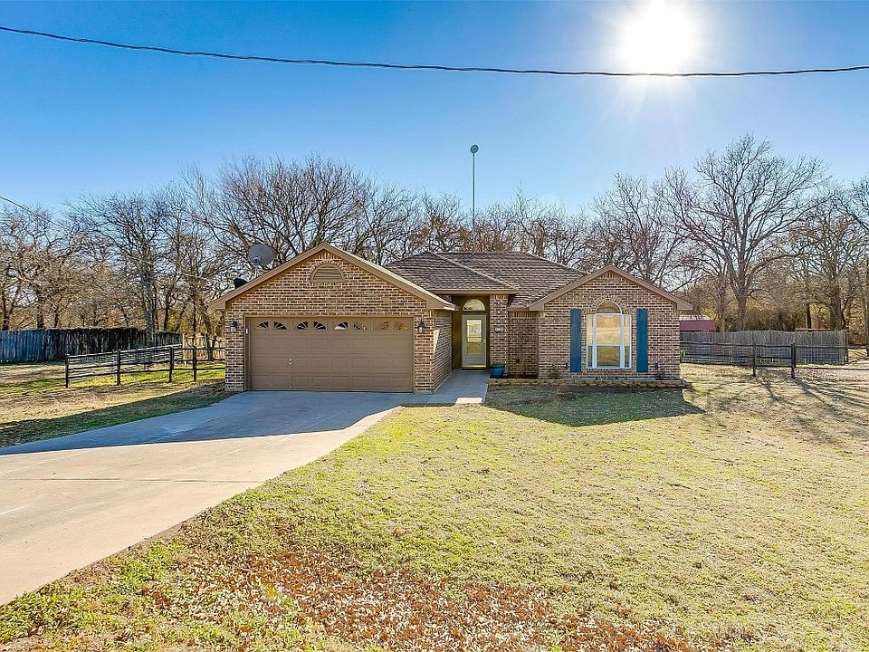 Adorable & updated 3 bed, 2 bath brick just outside Springtown that's move in ready for you. This home has all new wood look flooring throughout, fresh paint inside, all new light fixtures, new ss range, & a 10x20 all wood storage building. Open, split floorplan has a generously sized living area w lots of natural light. The kitchen cabinets are rich wood & compliment the tile counters & the deep corner sink overlooks the backyard area. The master bedroom area has a stepped up ceiling height of 9 ft & 2 windows overlook the backyard. The en suite bath has all wood cabinetry, dual sinks, a tub & shower combo w a beautiful tiled surround & the walk in closet is huge w lots of cubbies & room for hanging clothes. There is a separate laundry room. Backyard is dotted w established Oaks & has 3 separate fenced areas for dogs or kiddos to run and play. There is a fire pit & also a loafing shed for small animals. Don't miss out on this adorable home. Perfect starter or downsized home. No HOA.