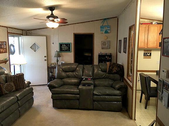 This cozy three bedroom / two bath mobile home is in great condition. It features a split floor-plan with eat-in kitchen and a large screened in front porch. It has a metal roof that is only 2 years old. Lots of updating has been done to this home. The yard is fenced and there are two large storage buildings. The home has a permanent foundation and qualifies for a FHA loan. This is a must see.