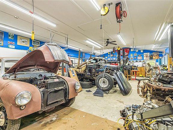 Charming Ranch on 5 Acres with Finished Basement, Workshop, and Dual Master Suites: Welcome to your dream homestead! Nestled on 5 picturesque acres in a cul-de-sac, this spacious and thoughtfully designed ranch offers both comfort and versatility-perfect for multi-generational living, home-based business, or simply spreading out and enjoying the land. Exterior Features: 48x28 workshop with 4 bays, a car lift, heating and air, perfect for any car enthusiast or small business owner. Don't miss the abundance of Blueberry and azalea bushes throughout the property, plus a storage shed great for extra storage. Large covered front porch and deck off the kitchen-ideal for relaxing and entertaining! Main Floor Highlights the 2 Master Suites with full bathrooms, handicap-accessible, and spacious walk-in closets. Expansive vaulted-ceiling family room filled with natural light, a Separate dining room for formal gatherings, an Updated open kitchen featuring cedar-beamed ceilings, white cabinets, and stainless-steel appliances. On the main floor is also an Oversized main-level laundry room and a half bath for guests. The Upstairs Loft is an Open-concept loft space-great for an office, reading nook, play area or 4th bedroom. The Finished Basement offers a Cozy family room, full kitchen, large bedroom, and full bathroom. There are Two exterior entrances for potential separate living space. An Additional laundry room, unfinished storage areas, and potential 4th/5th bedroom or office can be found in the basement. Whether you're looking for space to spread out, a place to run your hobby or business, or multi-family options, this home checks all the boxes
