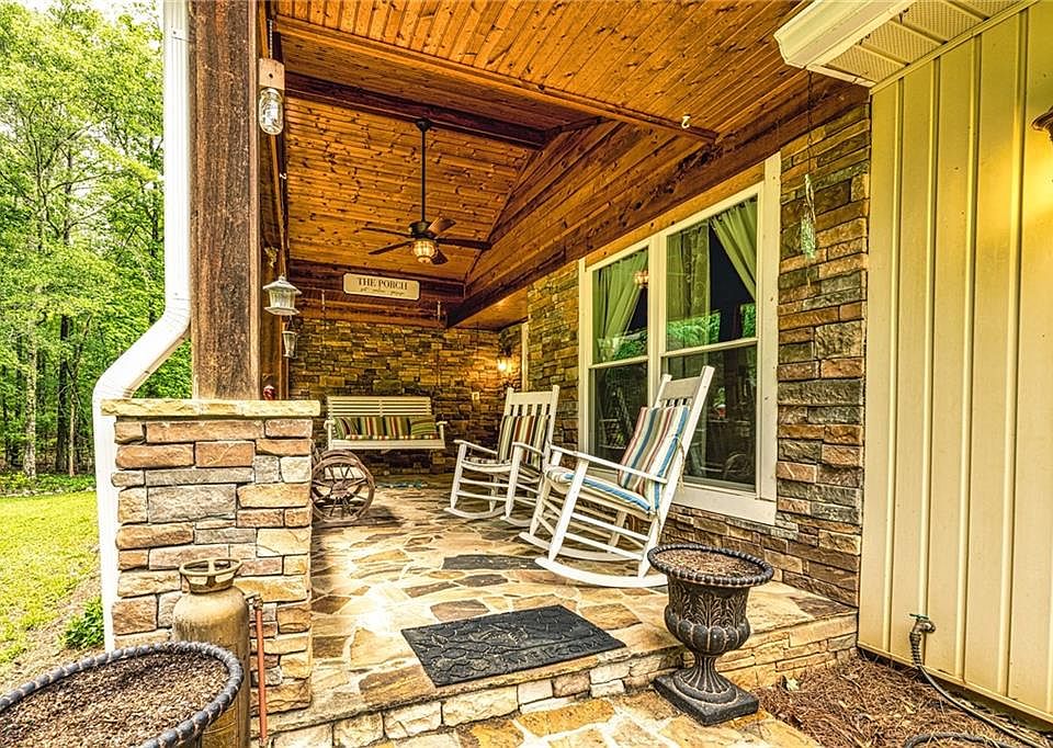 Finished basementBlueberry and azalea bushesCedar-beamed ceilingsCovered front porchOpen-concept loft spaceCozy family roomSeparate dining room