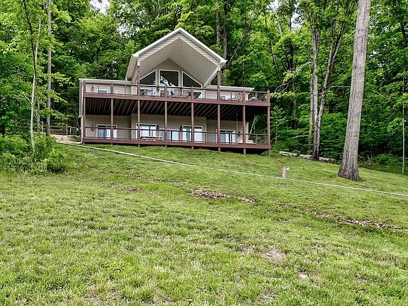 Stunning lake front home with dock and rental income history. 4 bedrooms and with a full bath in each. Close to Powell Valley Marina.