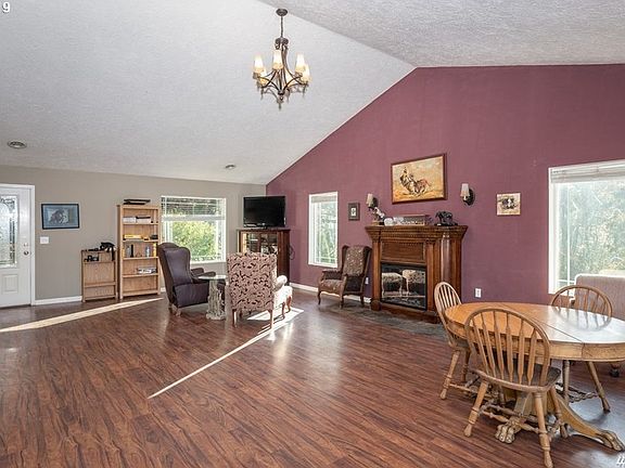 Spacious home on 9.5 acres! Bring your horses home to 2 Barns and a fully fenced pasture to roam. Home features an open concept kitchen and dining area, Vaulted ceilings, open loft, master bedroom with attached full bathroom and walk-in closet, a large office space, 2 more large bedrooms and an unfinished basement with tons of potential!