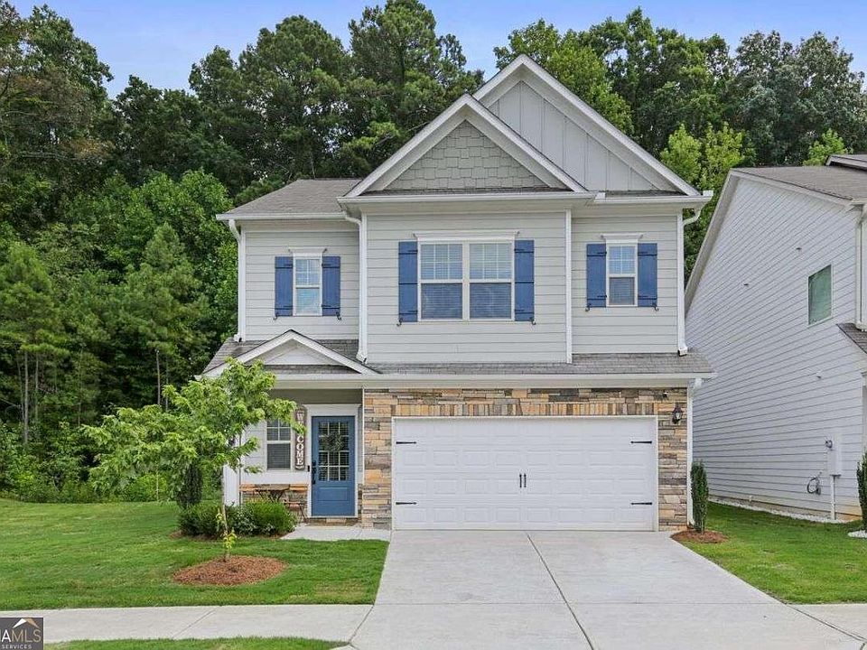 Must See! Step into this inviting sanctuary where natural light fills every corner. The main floor boasts a thoughtfully designed open concept layout, perfect for modern living. The kitchen is a standout feature, with a large island, stainless steel appliances, breakfast area, upgraded 42" cabinets, and granite countertops overlooking the cozy great room with a fireplace. Outdoor enthusiasts will appreciate the seamless access to the covered rear patio from the spacious eat-in kitchen. Luxury vinyl plank floors throughout the main floor ensure easy maintenance and a touch of elegance. Upstairs, the private owner's suite awaits, complete with a walk-in closet (with complete organization system), tiled shower, garden tub, and double vanity in the owner's bath. Three guest bedrooms, a loft area ideal for an office space (with a trendy NEW barn door feature!), a well-equipped laundry room with organizers, and a guest bath complete the second level. The private backyard is a delight, backing up to a peaceful wooded setting. It has been extended and fenced for pets, with a charming new short 3-step raised wall for added space and a playlet! Enjoy outdoor lighting in the backyard for evening gatherings. Recently added new sod enhances the lush greenery. Plus, there's an adjacent empty lot that won't be developed, and extra neighborhood parking across the street for guests. HOA includes front yard maintenance and trash services, ensuring the neighborhood always looks its best. Located in the prestigious Etowah High School District, this home offers convenience to HWY 75, Express Lane, HWY 575, and KSU. Don't miss this exceptional opportunity to make this house your dream home!