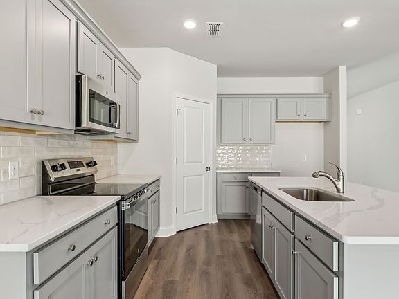 New incentive package- Buyers to receive 3.99% interest rate FHA/VA on a 30-year fixed and $5,000 for closing costs with use of preferred lender. See link for complete details or contact listing agents. Create memories when you step inside the five-bedroom Bartlett plan. This two-story home features a versatile flex room off the foyer, a covered patio off the dining area, and a bedroom on the main level ideal for guests. The open, designer-curated kitchen overlooks the spacious living room and features The Slate Collection design finishes. Here, you'll find cool grey cabinetry, brushed nickel hardware, white quartz countertops, tile backsplash, and stainless appliances. On the second floor, a large loft area offers space for a media room, play room, or home office. The primary suite has a generous walk-in closet, tiled walk-in shower, and a dual vanity. Three secondary bedrooms, a full bathroom, and a laundry room with storage closet complete the second floor.