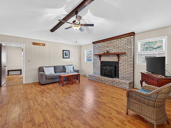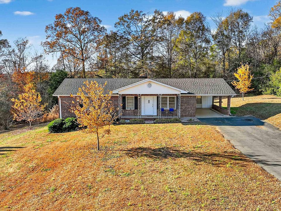 Investers and cash buyers will want to see this one! Welcome to this charming all-brick home situated on nearly 1 acre of peaceful, private land. Offering 3 bedrooms and 2 full baths, this property combines low-maintenance exterior features with comfortable interior living. Inside, you’ll find an inviting open floor plan highlighted by a spacious Great Room with a vaulted ceiling and a wood-stove fireplace—a cozy focal point for gatherings and everyday living. The kitchen flows seamlessly into a large laundry room with an exterior door, adding convenience and functionality. The washer and dryer remain with the property. The primary bedroom features its own full bath with a walk-in shower, while a second hall bath offers a traditional tub/shower combination. The property backs up to wooded land, creating a sense of privacy and room to roam. Two outbuildings will remain, providing additional storage options, and the single carport offers covered parking. A walk-in crawl space delivers even more storage flexibility. With full brick construction and vinyl eaves and soffits, exterior maintenance is kept to a minimum Home is being sold as-is. The oil tank needs replacement. The seller currently uses electric space heaters; the wood stove may also serve as a heat source. Located just minutes from Hwy 123 and near Liberty High School, this home offers convenience, privacy, and solid potential.