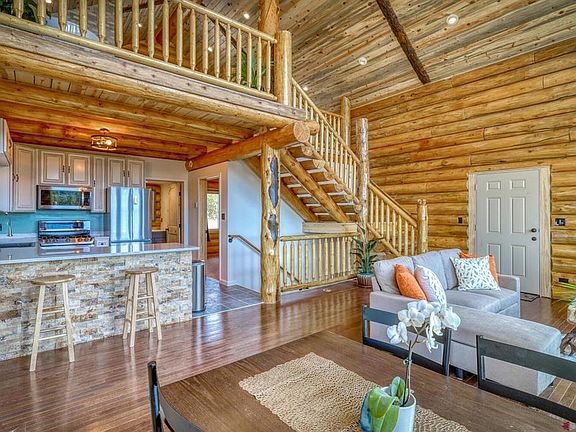 Owner ready to Sell! This gorgeous, custom-built, high efficiency home is just two years old and has impeccable workmanship from top to bottom! The floor to ceiling windows in the main level living area, open to the enormous deck, highlighting the grand valley view. Inside you will find a beautiful and functional kitchen, with attached dining and living areas, a full bathroom and a spacious bedroom. Follow the stairs down to the bonus living area and find a second living space, a mini kitchen, a second full bath and a bedroom. The primary loft style bedroom is upstairs and setup as a "couples retreat." It boasts a large tub for soaking, a half bath and separate closet space. The best parts about this house are the super custom energy efficient features. Passive solar windows, 3 zone smart central air heating and air conditioning system, a full humidification system, Merino wool insulation, and R-56 spray in foam in the ceiling, has this property brimming with extras. Quartzite counter tops, hardwood floors, and propane gas hook ups for installing a stove if desired. Outside, there is an RV camping pad with full hook ups, a 1,700-gallon cistern, and a 1,000-gallon underground propane tank. This place is the example of what both convenience and seclusion look like. Schedule your showing today!