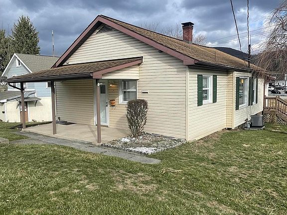 This well maintained ranch home offers 3 bedrooms and 2 bathrooms on a generous double lot. Featuring a cozy eat-in kitchen, a newer water tank, furnace and central air, this home is move in ready. The full basement includes a wood-burning stove, perfect for added warmth and ambiance. A detached two-car garage provides ample storage & parking, the paved driveway has also recently been sealed.