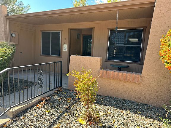 Nicely updated home in a convenient Village of Oak Creek location. New appliances, wood inspired flooring (no carpet) and skylights. Living & dining area with a breakfast bar, modern light fixture, electric fireplace insert and access to a rear patio that with a nice view and sense of privacy. The master features an updated full bathroom. Second bedroom with patio access. Updated hall bathroom with shower. There are plenty of closets throughout and storage closets on the front and rear patios. Two assigned parking spaces right out front. A grocery store, great selection of restaurants, golf, trails and red rock views, including Bell Rock and Courthouse Butte are within blocks. Limit two standard vehicles. Pet negotiable.