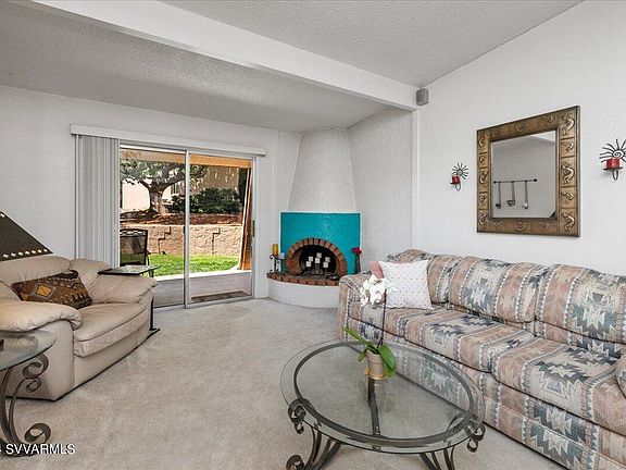 Welcome to your dream vacation home nestled in the red rock vistas of Sedona, AZ. This 2 bed, 2 bath end unit townhome offers a blend of comfort & the mesmerizing beauty of Arizona's landscapes. A front courtyard leads into an upgraded interior with a new HVAC system (2022). New vanities, lights, shower fixtures & plumbing in both bathrooms. The primary bedroom dazzles with Vera Wang built-in furniture & a sumptuous king bed. Entertain in a dining room with Red Rock views. The kitchen includes a breakfast bar, a newer dishwasher & custom painted Santa Fe cabinets. A newly installed chandelier and hall light fixture complement the ambiance, while a new chimney cap & 2 new front windows with plantation shutters enhance your retreat. Cozy up by the working wood-burning fireplace! Step outside to a charming patio with grassy backyard, complete with a flourishing mulberry tree. This townhouse promises additional privacy and space to unwind. Additional upgrades include upgraded cloth vertical blinds, two storage units with a custom cabinet work station in the front unit, and a speaker system for your entertainment needs. This turn-key vacation home comes furnished and is not just a residence; it's a lifestyle.