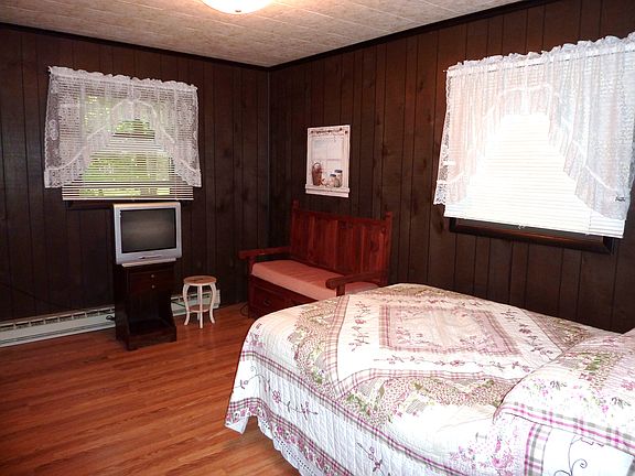 Walk to Lake Wallenpaupack from this move-in condition rustic raised ranch home w/walk-out basement. House features include 3 bedrooms, 1.5 baths, spacious kitchen, dining area, living room w/gas fireplace, family room, laundry, air conditioned, and a wraparound deck.