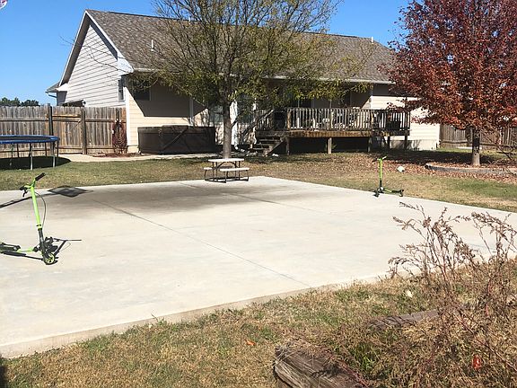 Single family home with open floor plan located on a quiet road. Home was built in 2005 and features 5 bedrooms and 3 bathrooms. It includes a master suite with stand up shower, whirlpool tub, and 2 large closets. Kitchen has plenty of storage with stainless steel appliances and walk in pantry. Finished basement has 2 bedrooms, 1 bathroom, and a very large entertainment area with surround sound wired in. House also includes a concrete safe room in the basement. It is situated on a large lot with a fenced in back yard with a concrete basketball court. Garage is attached with 2 car bays and a work bench and storage.