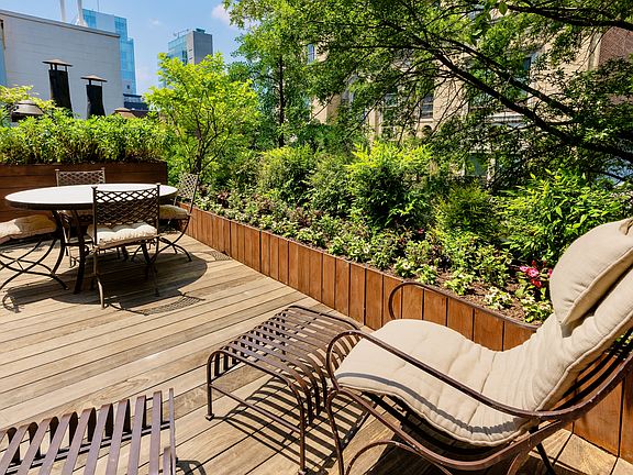 Inside, modern architecture is complemented by handpicked furnishings from BDDW, curated vintage pieces by Milo Baughman and Richard Schultz, and designer lighting from Soho Home. The open-concept living area invites both relaxation and entertaining, while the fully equipped kitchen makes home dining effortless. A private office provides a quiet workspace ideal for extended stays or remote work. Step outside to enjoy two private outdoor spaces: a tranquil rear garden terrace perfect for morning coffee or quiet evenings, and a spacious landscaped rooftop terrace with sweeping Village views, southwestern light, a built-in barbecue, outdoor shower, and additional kitchen areaideal for alfresco dining and sunset gatherings.