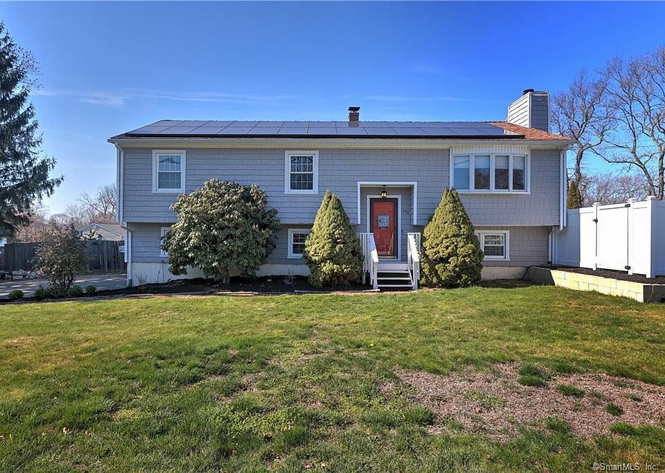 The Best Of Both Worlds- Walk to Walnut Beach or Relax Poolside in your inground pool. This 3 Bedroom , 2.5 Bath Raised Ranch offers spacious Living Room, Dining Room with slider to deck overlooking pool and generous backyard. Kitchen has Stainless Steel Appliances. Primary Bedroom has full bath and the Lower Level boasts a Family Room with Fireplace and New Carpet and a workout room with the versatility to be used for a Home Office or Playroom. Maintenance Free Vinyl Siding, Oversized Two Car Garage, Pool Liner (2022) Hardwood Floors on Main Living Area. Solar Panels Owned (No Buyer Liability) Great Commuter Location. Minutes to Schools and every amenity. This is your place to call home!