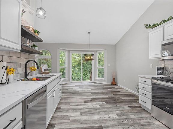 Pack your bags! This home has everything you are looking for! This custom-built 4-bedroom 3 full bath ranch home has over 1900 sq ft on the main level! NEW ROOF 9/2024 Beautifully updated with vinyl plank flooring throughout foyer, kitchen breakfast room, dining room, laundry and baths. Freshly painted throughout. New quartz counter tops in the vaulted kitchen. New tile back splash. New stainless appliances. New lighting throughout. Great room has vaulted ceilings and plant shelves. Wood Burning fireplace. Formal dining room. Main floor laundry room. Awesome finished lower level with approx 1000 sq ft of additional living space with a rec room, large 4th bedroom and a full bath! Lots of storage shelves in the unfinished side of the basement. Oversized 3 car garage. Large vaulted primary suite with bay window, plant shelves 2 closets and updated bathroom! You will love the fantastic 19,177 sq ft private, wooded lot on a quiet cul de sac! This home has it all!