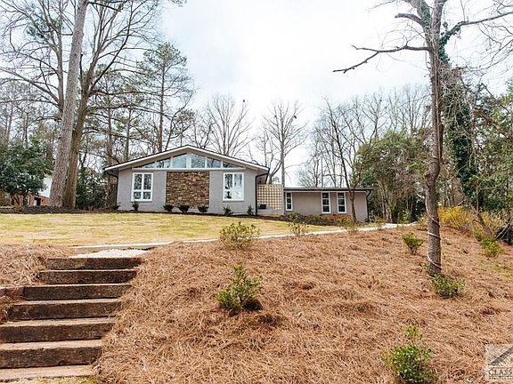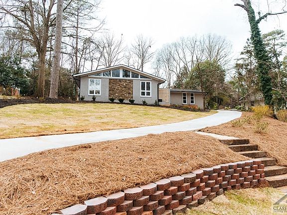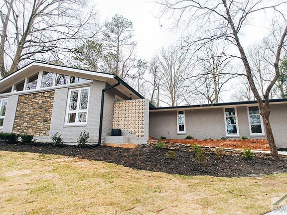 Simply stunning, this classic Mid-Century home has been completely renovated and restored to its former glory-and then some. With original features and stylings coupled with all the modern conveniences that today's high end buyer craves, it's the stuff of dreams. The original footprint of the home has been expanded to allow for more livability & interest making it a show stopper inside & out. From the road, you will notice the new roof line & bay of celestial windows, stone accents & original Breeze Block which has been lovingly salvaged & reused perfectly marrying today with the early 1960's when the house was initially built. As you round the corner, you will be charmed by the snappy turquoise double doors & the use of new, but "retro" hardware. Inside you will be awed by the cathedral ceilings which were handcrafted of clear Southern Pine from local craft supplier, Water's Edge Woods, & the double sided stone fireplace. The clerestory windows are mirrored along the back wall of the home as are the double doors allowing the owner to open the house up to the outdoors for entertaining family and friends. The kitchen is a gourmet's delight with its drop in gas range w/ matching vent hood, electric wall oven and matching convection oven/microwave combo, quartz countertops, & sleek modern custom cabinetry. The wood pendant lights add texture and warmth to the sleek space. Also off the kitchen is an office/flex space. The split floor plan has 2 secondary bedrooms each with an en suite bath on one side and the master suite on the other. The master suite has 2 walk in closets, wall mounted reading laps, and the most amazing master bath complete with double sinks, a show stopping walk in shower and an abundance of cabinets. The exterior spaces on this home are equally as amazing. The drive under carport was specifically designed to double as covered entertaining space and the flagstone patio is generous and has a gracious curve that mirrors the stone retaining wall built by original owner (a miniature version of Fred Birchmore's Great Wall of Athens). The upper yard (accessed from the side) is level and sodded making it perfect for yard games and the like and is sectioned off by a cable-rail fence. Additional mid-mod decorative accents include retro tile and lighting, door hardware, and sputnik chandelier (in front of fireplace). Other features include: all new plumbing, wiring, roof, HVAC, and windows.Tankless hot water heater.Spray foam insulation.