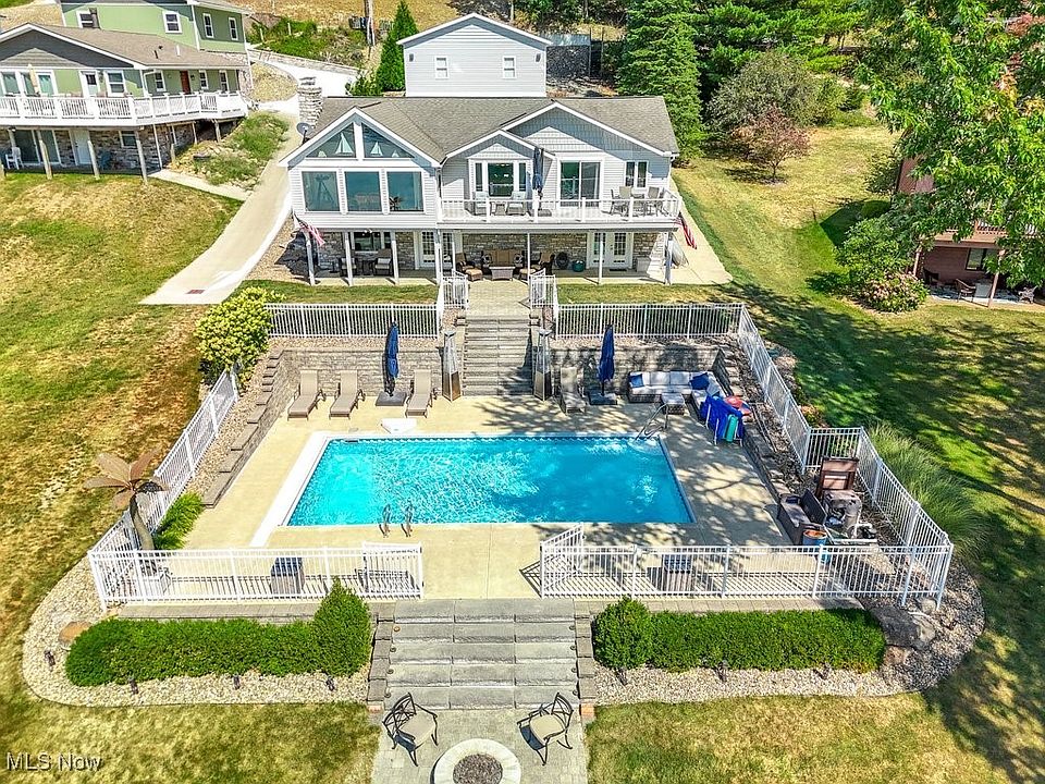 Lakefront Luxury Awaits! Wake up to stunning lake views in this 5-bedroom retreat, complete with a heated saltwater pool, automatic cover, and lakeside composite decking. Your main level primary suite offers tranquil water vistas and an expansive en suite with double sinks. Entertain in style on the spacious composite deck, covered patio, or gather around the gas fire pit as Bose speakers set the perfect mood. Inside, updated gas fireplaces keep things cozy, while the kitchen impresses with granite countertops. The lower level is an entertainer’s dream—living space, walkout access to the pool, and a laundry room for convenience. And don't forget the oversized, two-story, 4-car garage for all your toys! With a WiFi-controlled thermostat, you'll always be in control no matter where you are. This lakefront gem is the perfect blend of comfort, luxury, and low-maintenance living! Lake Mohawk is a private gated community with an unlimited horsepower 500 acre lake, 3 beaches, an executive 9 hole golf course with a separate membership, tennis/pickleball courts, clubhouse, and much more!