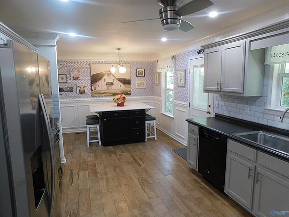 - Features: Ceiling Fan(s), Crown Molding, Eat-in Kitchen, Tile, Wainscoting