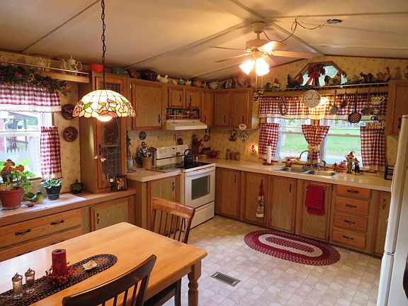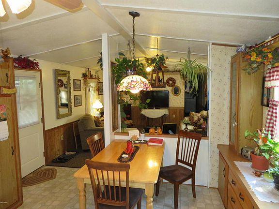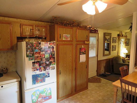 CUTE AS a button, move in ready in town, one floor living single wide mobile home, 2 bedroom and 1 full bath, laundry room, handicap ramp, newer carport, new carpet throughout, nicely landscaped, very low taxes, paved driveway, living room gas fireplace. Furnishings negotiable.