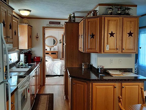 Welcome to this charming mobile home, nestled in a serene mobile home park that offers peace and tranquility. This inviting residence features a spacious covered front porch, perfect for enjoying your morning coffee or unwinding in the evenings. With ample space and a detached garage, you'll have plenty of room for parking and storage. Embrace a relaxed lifestyle in this cozy haven, where comfort meets convenience. Don't miss your chance to make this delightful property your own!