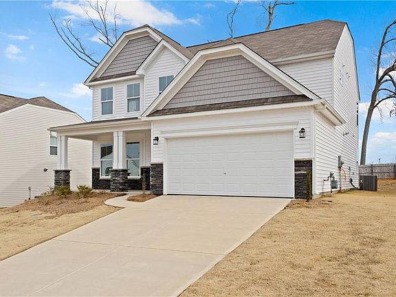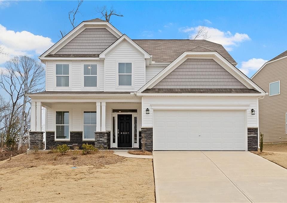BIG RED BOW EVENT - RECEIVE $25,000 FLEX CASH OR SPECIAL RATE FINANCING - Ask for details. At Eastwood Homes, thoughtful design and lasting quality set our homes apart. This two-story Cypress combines timeless farmhouse style with a functional layout designed for everyday living—bringing comfort, value, and charm together in one inviting home. The exterior showcases white siding with dark blue accent panels and cedar columns on the front porch, giving the home a modern farmhouse feel with a fresh pop of contrast. A covered back porch completes the look, creating the perfect spot to unwind outdoors. Inside, the main level features a separate dining room or flexible space, along with a guest bedroom and full bath, offering convenience for family or visitors. The open-concept kitchen blends clean design with practical function, featuring white cabinetry throughout, a large island with cabinets on both sides, quartz countertops, and black lighting and faucet fixtures that tie the look together with modern simplicity. Upstairs, the primary suite includes a large tiled shower with seat and built-in shelf, plus two additional bedrooms and a loft, providing plenty of room for relaxation or play. Quartz countertops throughout and a neutral, cohesive color palette make the home feel polished and easy to personalize. Located in Jackson County’s premier master-planned community, Twin Lakes offers resort-style amenities including two scenic lakes with walking trails, a clubhouse, fitness center, pool, playground, dog park, and lakeside pavilion. Just 2 miles from I-85 and minutes from downtown Hoschton & Braselton, enjoy the convenience of nearby restaurants, shops, and local breweries. Home is about to start construction and estimated to be completed in the Spring of 2026. Photos are for representation purposes and not of actual home. Built with Care by Eastwood Homes.