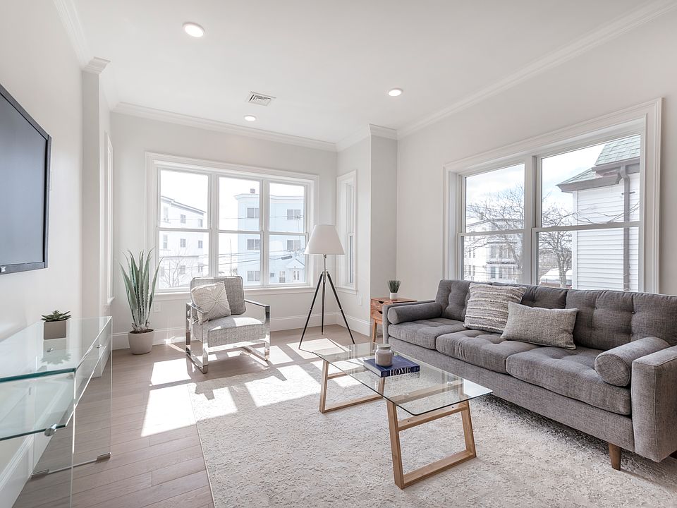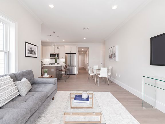 Floor through 2 bed, 2 bath featuring a large open concept living area highlighted by 9.4’ ceilings with crown moulding, calming harbor views, Calacatta Halo kitchen island & countertops, 4x12 Carrara marble backsplash, walk-in laundry closet, large master bedroom with Carrara marble tiled bath. Functional features include Bosch appliance package w/slide-in gas range, 27” Electrolux washer & vented dryer, custom closet systems, large private storage room, Central heating/cooling, tankless Navien, USB outlets throughout, WI-FI Smart Thermostat plus keyless entry video intercom for simple package delivery. 1 deed parking space, short walk to the Blue Line, East Boston Greenway, Constitution Beach, parks, shops & restaurants.