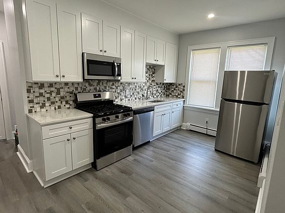 This is a two bedroom apartment in a total renovated four unit building. The apartment has all the amenities that you would need and want. Living room, two bedrooms with high ceilings, eat in kitchen with tall cabinets and quartz countertops. All stainless steel appliances. Laundry in the unit with full size front loader washer and dryer. The unit has 10' tall ceiling, very open and nice size bedrooms. The property is very close to the train station, and down town area. Very close to main highways and shopping centers. Very centrally located.