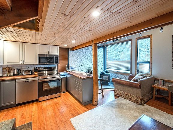 Welcome to your perfect alpine getaway! This charming 1-bedroom + loft, 1-bathroom condo is ideally situated just minutes from the chair lift, lodge, snowshoeing trails, hiking paths, and even frisbee golf—making it the ultimate year-round mountain escape. This corner unit offers a bright and airy layout, thanks to large windows that let the sunshine pour in and showcase the natural beauty outside. Inside, you'll find a beautifully updated full kitchen complete with modern appliances, new pot lights, electrical upgrades, wood stove, hot water tank, baseboards, tongue & groove accents, and stylish backsplash—all combining rustic charm with contemporary comfort. The space is cozy, easy to heat, and perfectly suited for both personal use and rental income—yes, it's rental-friendly and pet-friendly too! Whether you're hitting the slopes in winter or hiking the hills in summer, this unit offers unmatched easy access and true ski-in/ski-out lifestyle. Don't miss this rare opportunity to own a piece of paradise right on the ski hill at Mount Baldy. Ideal for adventurers, investors, or anyone seeking a peaceful mountain hideaway.