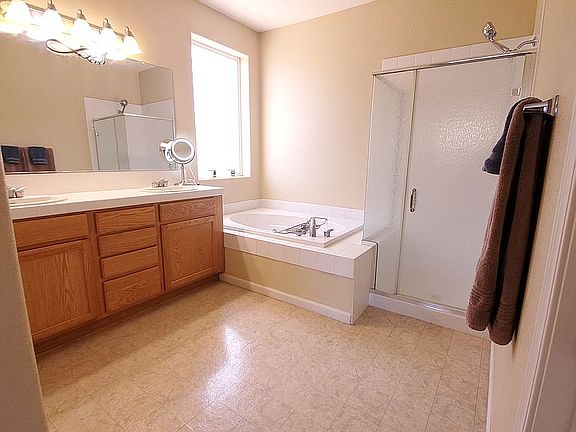 - MASTER BEDROOM: High Ceiling, Double Sinks, Shower Stall, Bathtub