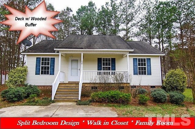 3 BR/2 Ba Ranch in Well Established Creekside Subdivision* Relax on the Front Porch* NEW Carpet* FRESHLY Painted* Family Room w/ Ceiling Fan* Sunny Eat in Kitchen w/ Range & Dishwasher* Split Bedroom Design* Master Bedroom w/ Ceiling Fan & Attached Bathroom w/ Shower & Walk in Closet* Deck overlooks Back Yard w/ Wooded Buffer* Convenient to I 95 & NC 96*
