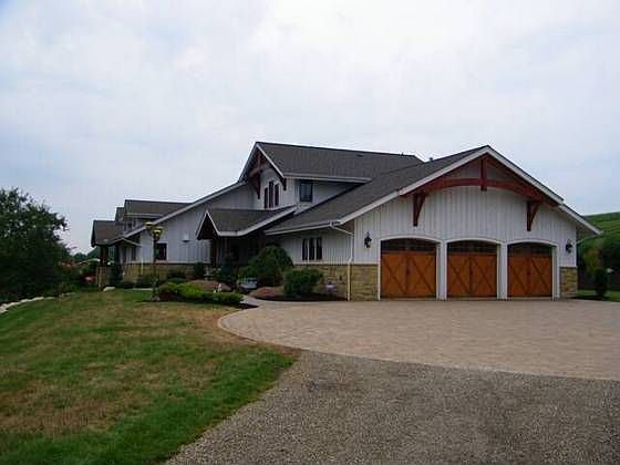 This Two-story home features Stone and Cedar exterior, Composition roof, 3 car Attached Garage, Hard Wood and Tile and Wall to Wall Carpet floors, 2 fireplaces, Propane and Forced Air heating, Central Air and Electric cooling, 4 bedrooms, 3 full bathrooms, 1 partial bathroom, Automatic Garage door opener, Dish Washer, Gas Stove, Jet Spray Tub, Kitchen Island, Screens, Pantry, Refrigerator, Security System, Wet Bar.