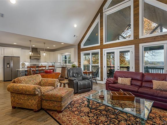 Live every day like you're on vacation! With sweeping views of both Brush Creek and the Black Warrior River, this like new custom-built home offers modern conveniences in an unadulterated natural setting. The soaring ceilings, window walls, and water-resistant luxury vinyl plank floors help make this the perfect riverfront home. The extra large laundry room, covered exterior elevator, and ground floor half-bathroom make everyday living extra comfortable. Watch the bald eagles fly across Brush Creek from the nearly 1,000-square-foot back porch or change views and wave to the barge captain from the front porch. Park your fifth wheel under the house and hook it up to the 50 amp power outlet. Launch your boat from the gated neighborhood's private boat launch and start your day with some of the best fishing around.