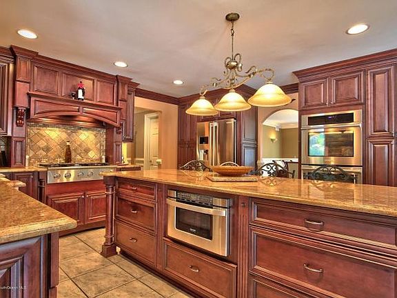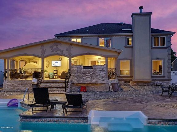 Check out this custom Stone & Stucco Colonial built to the highest standards this home is better than new! Upgrades include Ceramic & Brazilian Cherry floors throughout, intricate trim, newer designer kitchen with solid wood cabinetry, granite counters, tumbled marble backsplash, marble farmers sink & high end stainless steel appliances. Other upgrades include Anderson Windows, HW Baseboard Heat, Wood burning fireplace in family room, Finished basement with stucco columns, wet bar and full bath. Outside you have a huge rear covered porch area which is fully tiled, grill area, soffit lights, ceiling fan, TV and overlooks the inground pool outlined in stamped concrete. Double lot with private yard surrounded by woods, property goes beyond fence there is a concrete pad for sports or kids!