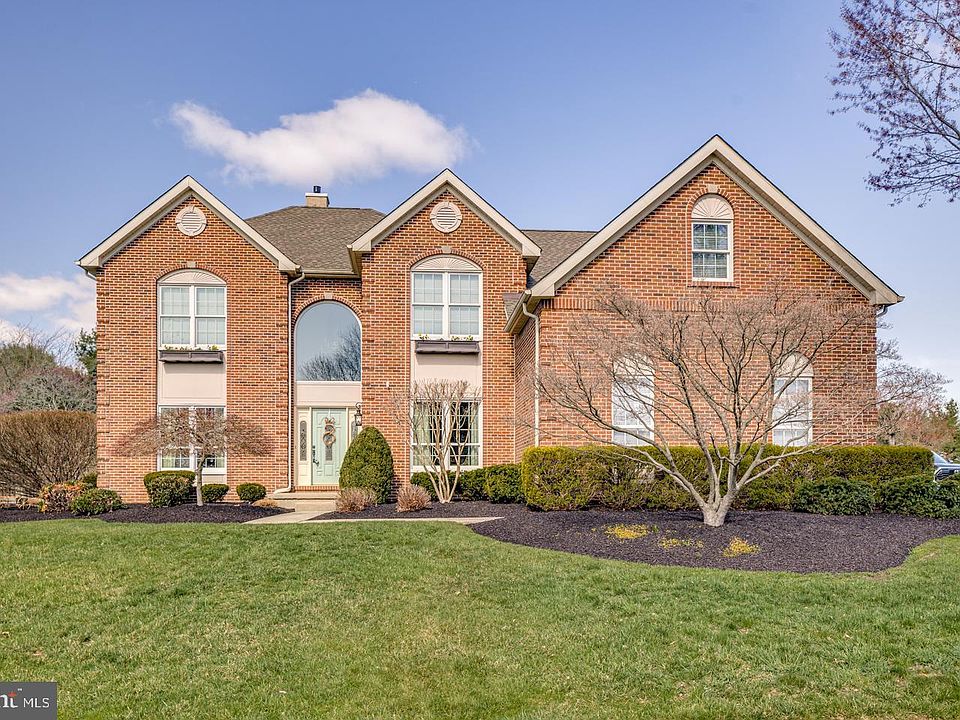 Welcome to this exceptional 4-bedroom, 2.5-bath brick-front Colonial located in the highly sought-after Crosswicks Chase community of Chesterfield Township. Nestled on nearly an acre, this home offers elegant upgrades, spacious living areas, and a fantastic backyard for entertaining. As you enter the two-story foyer, you'll immediately notice the thoughtful design and high-end features, including hardwood floors and glass French doors leading to a private first-floor study. The updated powder room features stylish shiplap accents. The formal living and dining rooms are separated by elegant columns and showcase shadow box detailing, chair rail, and crown molding.The new kitchen is a showstopper, featuring white shaker cabinets, a center island with quartz countertops, a ceramic tile backsplash, and stainless steel appliances. The breakfast area offers scenic backyard views and a skylight, filling the space with natural light. A step down leads to the spacious family room, highlighted by cathedral ceilings, two skylights, a vent-free gas fireplace, and a back staircase leading to the second level. A laundry room with a utility sink and a powder room complete the first floor. Upstairs, you’ll find four spacious bedrooms and a well-appointed hall bath. The expansive primary suite includes a sitting area, a massive walk-in closet, and a master bath with a vaulted ceiling, skylight, and fresh paint. The fully finished basement is designed for entertainment, featuring a media room, game room, bar area, and a cedar closet. Step outside to your backyard retreat, complete with a heated Gunite pool with a Jacuzzi, a brand-new pool bar with a TV, and a spacious patio—perfect for entertaining. This home has been meticulously maintained, with major updates including a new roof and skylights, as well as an updated heater and hot water tank. Located in a charming community with large lots, this home is walking distance to Charlotte Rogers Park and the historic Crosswicks village. Ideal for commuters, it's just five minutes from Routes 295, 206, 130, 195, and the NJ Turnpike, with Hamilton Train Station only 12 minutes away. This move-in-ready home is a must-see, offering an excellent location, top-rated Chesterfield schools, and an unbeatable combination of luxury and convenience. Schedule your tour today!