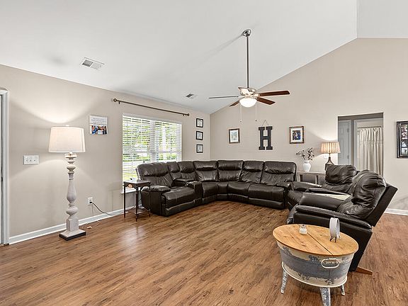 This incredibly inviting home with a spacious front porch rests on a spacious lot. Upon entering, you will be greeted by an open concept space with high, vaulted ceilings that will be great for hosting loved ones or enjoying a relaxing evening at home. The home features 3 bedrooms and 2 full bathrooms for your convenience. The master bedroom boasts a walk-in closet and a private ensuite. In Bonneau Village, you will enjoy being oh so close to Lake Moultrie and the delicious dining options and adventure that comes along with that. Summers on the lake will never be the same. Come see your new home today!!