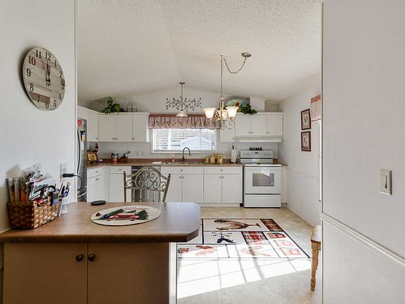 Nice 2003 home with 1280 sf on rented lot in Rolling Meadows. Rent includes water, sewer, trash, and land rent. Home is in Perfect condition, with big deck, large eat in kitchen, full size pantry. 3 nice size bedrooms. Master bedroom has walk in closet. Storage shed 10x15, covered parking is 20x20. This has everything for a low price!