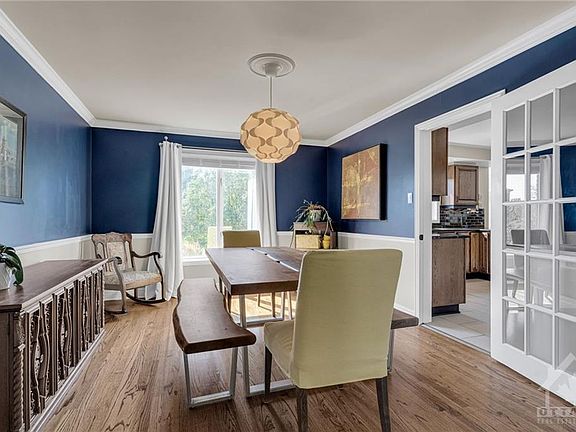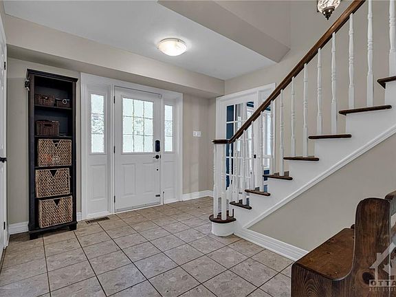 Welcome to your private retreat, only 15 minutes from Kanata, nestled on 3+ acres for seclusion and privacy with mature trees. This turnkey home is the perfect blend of tranquility and modern touches. The main floor features a classic centre hall plan, formal living/dining room, with hardwood floors. The updated kitchen, heated floors, generous eating area, cozy family room with wood burning fireplace make this home perfect for entertaining. Upper level features a spacious primary bedroom, walk in closet with custom closets, and a renovated 5 piece ensuite with heated floors. Offering 3 additional spacious bedrooms, all with new carpet and topped off with an updated main bath. Finished lower level with huge rec room, storage and a workshop. Outside includes a huge deck adjacent to your landscaped lot. Updates include flooring, laundry room, septic, furnace, heat pump, patio door, deck, hot water tank, and more! Generate additional income with MicroFIT solar panels. 24 hours irrevocable 2023-09-12