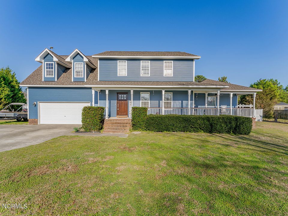 Presented for sale is a beautifully maintained home located in the heart of Hampstead sitting on .75 acres. This colonial style home offers a big living area with recently replaced floors throughout most of the house. This home offers four bedrooms and three full bathrooms with one half bathroom on the main floor. A big bonus room over the garage will be perfect for a playroom, office, or home gym. On the main level you will also find a charming second master that could be used as a mother-in-law suite with his and hers vanity and a beautiful walk-in shower! Outside, you will find a spacious screened in porch overlooking a fully fenced in backyard. This house has never flooded! Other key features include a newer roof (2019), two new HVAC units (2020), and a new well put in (2020), as well as a two-car garage, and a small pond in the backyard. The above ground pool is a bonus, but if you do not want it the pool company will remove it at no expense! Don't miss out on this wonderful opportunity.