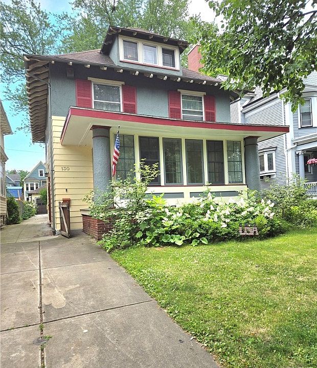 130 Dorchester Rd...Elmwood Village! This is it! We're home! Welcome to this well kept and maintained 4 bedroom, 2 full bath jewel is located on a premier, beautiful, flower-full street. The first floor: Grand living room features hardwood floors, beamed ceiling and fireplace and it opens to a bright front sun parlor. Also pocket doors open to the impressive original wood paneled dining room. The large updated kitchen has wood cabinets and granite counters. The family room addition with fireplace looks out to the backyard and huge out door deck. The 2nd floor: The massive primary bedroom with bath, hardwood floors, large windows and closets. 2 additional big bedrooms both walk through to the huge 4th bedroom. There is also a 2nd full bath. The attic has a finished room for office or play and plenty of storage areas. Nice landscaped yard with giant outdoor deck and 3 car garage. Full basement. Lots of interior and exterior improvements by owners. Just add your own tastes and you have your forever home. Newer furnace, driveway, exterior paint, chimney.