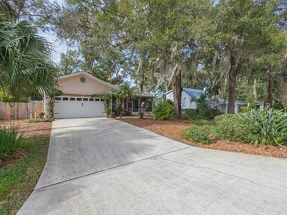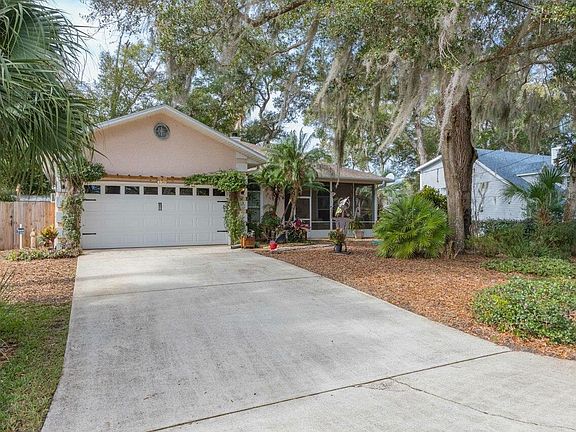 Coastal charm meets modern comfort in this beautifully maintained 3BR/2BA custom-built home in St. Augustine South, just moments from the Intracoastal Waterway! Designed for effortless living, this home features soaring 10-ft ceilings, a spacious living room with a cozy wood-burning fireplace (complete with an artificial log insert), built-in bookcases, and a separate den—ideal for work or relaxation. The split floor plan ensures privacy, while the formal dining room and large kitchen, highlighted by a unique flamingo chandelier, create a warm and inviting space for entertaining. This home has been meticulously updated with a new dishwasher (2024), new range (2023), and a fridge, microwave, disposal, and water heater all from 2021. A new complete HVAC system was installed in 2020, along with a new septic system the same year. The roof, gutters, hurricane shutters, and skylights were replaced in 2014, and the home was replumbed in 2008. (More) The exterior has also been freshly painted, and a water softener and washer/dryer are included. Storage is abundant with built-in shelving in the garage and an outdoor storage shed equipped with electricity. The fenced backyard is a private oasis, featuring a pavered patio perfect for relaxing or hosting gatherings. Boat lovers will appreciate the dedicated parking space beside the garage, with two neighborhood boat ramps just minutes away. With no HOA restrictions, you’ll enjoy the freedom to make this home your own while being conveniently close to shopping, the beaches, and historic downtown St. Augustine. This move-in-ready gem won’t last long—schedule your showing today!