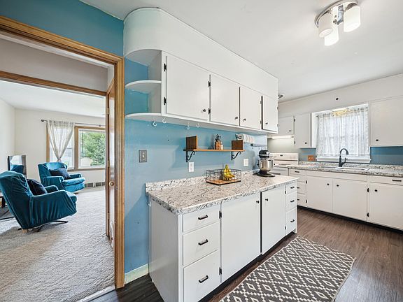 Discover this charming, affordable and move-in ready 3-bedroom rambler, ideally situated just a block from the city park. This home offers peace of mind with its permanent siding, updated electrical panel, replacement windows, and new patio sliding door. Updates include a new water heater, new dishwasher, new dryer and fresh flooring in both the kitchen and lower-level living area. The addition off the kitchen provides extra dining space and opens to a freshly stained deck, perfect for grilling, relaxing, and entertaining. Enjoy the spacious yard and large storage shed with overhead door. Main floor full bath features durable, tiled floors. Partially finished basement offers an additional living room, a large bedroom and a rough-in for a future bathroom.