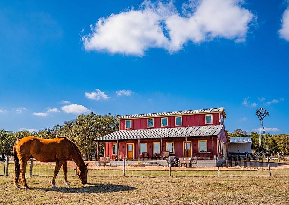 The H2 Ranch defines living in the Texas Hill Country. It is ideally located in Kendall County, between Boerne and Comfort. The Industrial/Farmhouse styled home is perched overlooking a 33+/- acre field with the balance of the land located behind the improvements. The improvements include a three-bedroom and three full bath home with a large front porch. Nearby is a large concrete floor barn with oversized sliding barn doors on both ends and a set of piped pens for horses and livestock. The little town of Waring, with its step-back-in-time charm, is approximately 3 miles away. Owner is LREB.