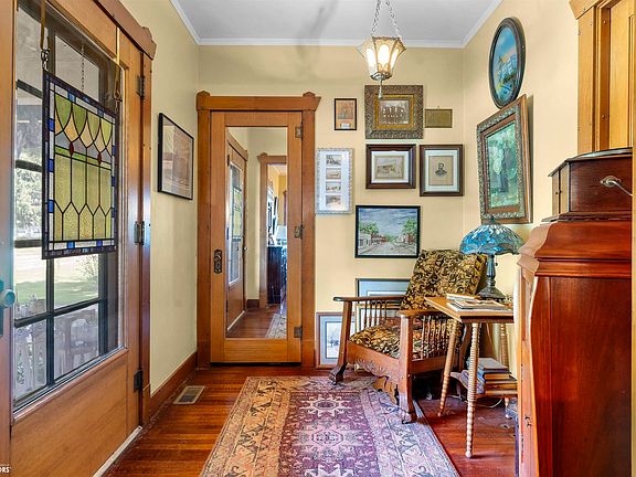 TAKE A LOOK AT THIS WELL CARED FOR older home that has been in the same family for the last 81 Years. This 4 bedroom, 2 bath home has original wood floors and woodwork on the main level. Main level includes the updated kitchen, dining area, living room with fireplace, 2 bedrooms and a 3/4 bath. The upper level has 2 bedrooms, a full bath, and lots of attic storage area. The basement has usable space for laundry, storage, and a recreational room. Front & back porch are perfect for enjoying the outdoors when weather permits. The back porch looks out over an open pasture field. There is a 2 car garage, and 3 additional storage buildings, all situated on 0.88 of an acre m/l. THIS IS A HOME YOU MUST SEE!!!
