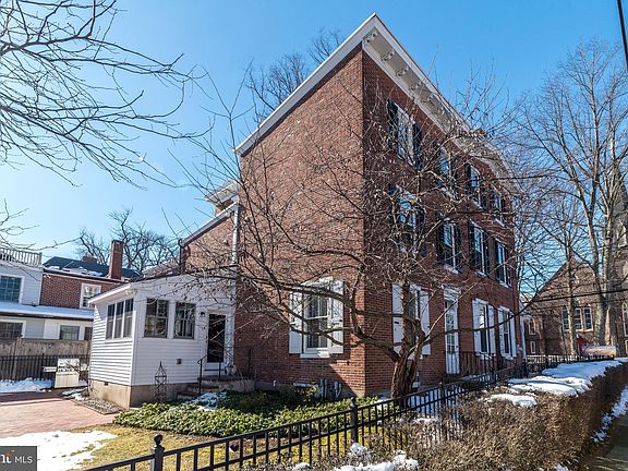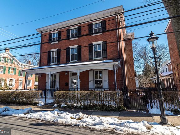 This stately home is situated perfectly on a spacious corner lot in the center of Doylestown Borough. The brick exterior lends itself to a timeless era while the interior updates offer modern sophistication. Dating back to 1867 it is a mix of historic features with an updated flare. The impressive front porch offers a shady spot to relax. This beautiful home offers 3908 feet of living space on three floors. The first floor boasts ten-foot ceilings throughout with mostly hardwood. The gorgeous molding and deep window wells add to the ambiance. The floor plan lends itself to versatility depending on your needs. A beautiful gas-burning fireplace can be found in the spacious family room with folding French doors allowing the light to enter brightly. You will love the custom built-in shelving for storage and display. In the rear of the first floor, you will find a newer addition that offers a kitchen for a chef with a cathedral ceiling, gorgeous cabinetry, a six-burner Wolfe commercial range including double ovens, and a Sub-Zero refrigerator. In addition, there is a large island with a built-in microwave, warming drawer, and under-counter beverage cooler. Exposed brick, granite countertops, and recessed lighting complete this modern space. The sunny breakfast area encompassed with windows and a full view atrium door leads to the rear yard brick patio where you will find the perfect spot for outdoor living and entertainment. A brick walkway leads to the oversized two-car garage with an upper storage area. The second floor offers impressive nine-foot ceilings, a spacious master bedroom with a large custom walk-in closet, a master bath, and a private water closet. A second bedroom, sitting area, and full bath can be found on this floor. The third floor offers a bedroom with an office/sitting room, a nice-sized library, and two additional bedrooms that lead to a shared hall bath. Need more space? The unfinished basement is readily available for a gym, game room, wine cellar, or whatever you desire. An elevator is the perfect surprise, making it easy to access all three floors with the touch of a button. This beautifully finished historic home offers all the conveniences you need with accessibility to some of the best dining, shops, and cultural attractions just a short walk away. Don’t wait to start living your best life.