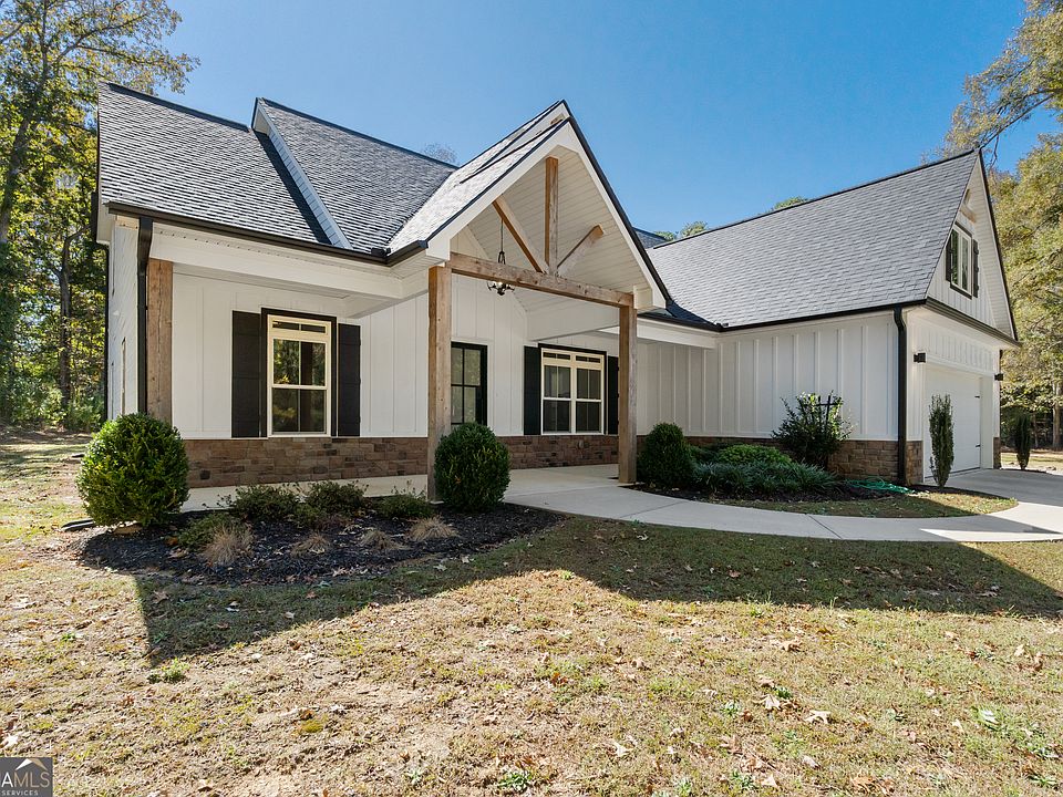 Immaculate, custom-built modern farm-house located in Tyrone, GA, just 20 minutes from Hartsfield-Jackson airport, built on a private one-acre lot with mature trees. ZERO percent down payment option available. Seller open to paying closing costs for mortgage interest rate buy-down. Low maintenance exterior with hardiplank siding/board and batten, cultured stone knee wall, and vinyl soffits/porch and patio ceilings. Custom iron front door, 100% LED owner-selected black light fixtures, and extra foundation, window, and door insulation, all contribute to very low monthly power bills, even in the warmest and coldest months. Luxury vinyl plank flooring in all rooms, white shaker kitchen/bath cabinets with grey quartz countertops, matching Kitchen Aid black stainless steel appliances, and custom black plumbing fixtures throughout. Expanded, covered back patio is perfect for entertaining with extra lighting, ceiling fan, fireplace, and views of nature and area wildlife. Upper level has an expansive suite/multi-purpose room with ensuite bath and unfinished attic has the height and square footage for potential living space/additional bedrooms. Priced below most recent appraisal value, structures have been or will be removed on adjoining lot for new farmhouse style construction and $1M+ plus existing and upcoming home communities within 2 miles. Just a short drive to Town of Tyrone parks/shopping or a few miles to Peachtree City restaurants, etc. Sought-after Fayette County schools! Recent home inspection report available for review during due diligence.