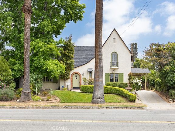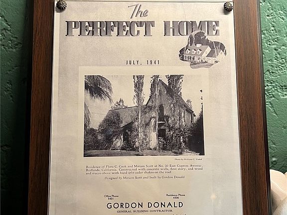 Welcome to the Music Cottage, awarded "The Perfect Home' in July 1941. This is your opportunity to own a one-of-a-kind home in the heart of the Historic part of Redlands. Step inside this delightful English style cottage that boasts high gables and an inviting arched front door that sets the tone for its timeless appeal. As you step inside, you'll be greeted by the warmth of original windows that bathe the interiors in natural light. The vaulted high ceilings add a sense of spaciousness to the atmosphere. The focal point of the large and open living room is a magnificent custom floor-to-ceiling bookcase adorned with accent lighting and custom ladder. A fully renovated kitchen with a walk-in pantry and basement, perfect for storage. The home comes with 2(two) full bathrooms that have been recently renovated to accommodate a modern appeal while retaining its charm. Come see it for yourself, no detail was overlooked. The backyard contains a blossoming lemon tree and is wide open. The space has endless potential for you to create your perfect oasis or build an ADU. Other details about the house include a working gas fireplace, working central air and heating as well as 3(three) mini-splits to help cut down on energy costs. The dining room and downstairs bedroom feature original brick floors, while the rest of the house has hardwood flooring. There is a new tankless water heater, an upgraded electrical panel and new plumbing, including a recently replaced main sewage pipe line. This home is not just a dwelling, it’s a piece of history lovingly preserved. With timeless architectural features and thoughtful design elements, it offers a unique opportunity to own a piece of the past while enjoying modern comforts. Don’t miss your chance to make this charming English Cottage your own retreat in the heart of a beloved community.