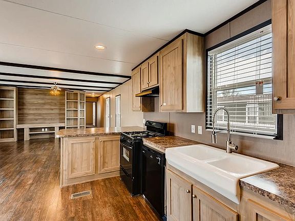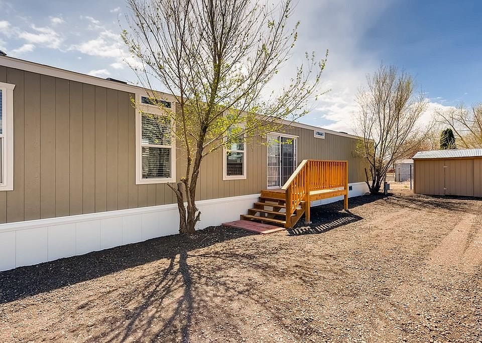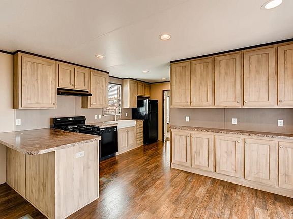 Brand new manufactured home in Pueblo West. This property provides amazing value for the price! The lovely kitchen has all new cabinets with plenty of storage space, farm style sink, new appliances, pantry closet, and peninsula. The living room contains a large built-in entertainment cabinet, ceiling fan, and laminate floors. Large master suite with walk-in closet and 5 piece bath. The master bathroom has a double vanity and a lovely soaking tub, made for relaxation. There are 2 additional bedrooms and a full bath. The exterior has a new deck, new 6 foot wood fence on the rear of the lot, and rock landscaping that allows for easy maintenance. Plenty of off street parking, dog run, and shed. Property is eligible for VA and FHA!