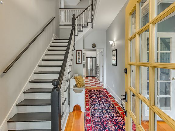 Updated and Remodeled Victorian Home in Newberg! This fabulous Victorian home in Newberg seamlessly blends vintage charm with modern style. Here are the key features that make it a real head-turner: 1. Spacious Layout: With four bedrooms and two full baths on each level, this home offers ample space for comfortable living. 2. High Ceilings and Hardwood Floors: The warm and inviting interior features fir hardwood floors and dentil crown molding, creating an elegant atmosphere. 3. Enormous Kitchen Space: The extensive kitchen area is perfect for cooking and entertaining. It has a HUGE prep island, making meal preparation a breeze. 4. Vintage Details: The home retains its vintage soul with features like the original Victorian-style wood black and white staircase, book built-ins, peek-a-boo kitchen farmhouse style cabinetry & French doors. 5. Main-Level Bedroom: A roomy bedroom on the main level provides convenience and flexibility. Large enough for a work desk and a seat for tea. 6. Outdoor Oasis: The backyard is a private retreat with new sod, planting beds, and a new covered outdoor entertaining area with room for a BBQ and a large seating arrangement. There's even a garden shed with electricity that could double as a workshop or artist studio.7. TESLA Charging Station: For eco-conscious homeowners, adds convenience. 8. Mis-cellaneous: 240 power on the exterior for Hot Tub or AC, View of Chehalem Mountain from front bedroom, New Refrigerator & Dishwasher 2021, Roof 2016, New Sewer Line 2018, Vinyl Windows, New Side Fence, New Interior Paint in many rooms, extra-long, extended driveway and recessed lighting. Jaquith Park is a five-minute walk away. Whether you're relaxing on the covered front porch or enjoying the distinctive details inside, this Victorian gem offers a unique blend of vintage charm and modern comfort. This property could be an outstanding short-term rental, with over two dozen Oregon wineries nearby. Walk and Bike Scores are Excellent!